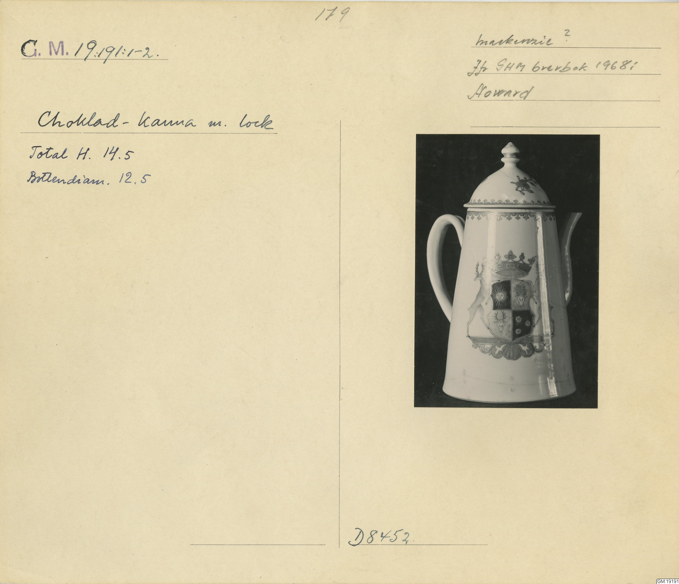 adliga ätten Mackenzie af Macleods vapen, jfr. GHM:s brevbok 1968: Howard.
