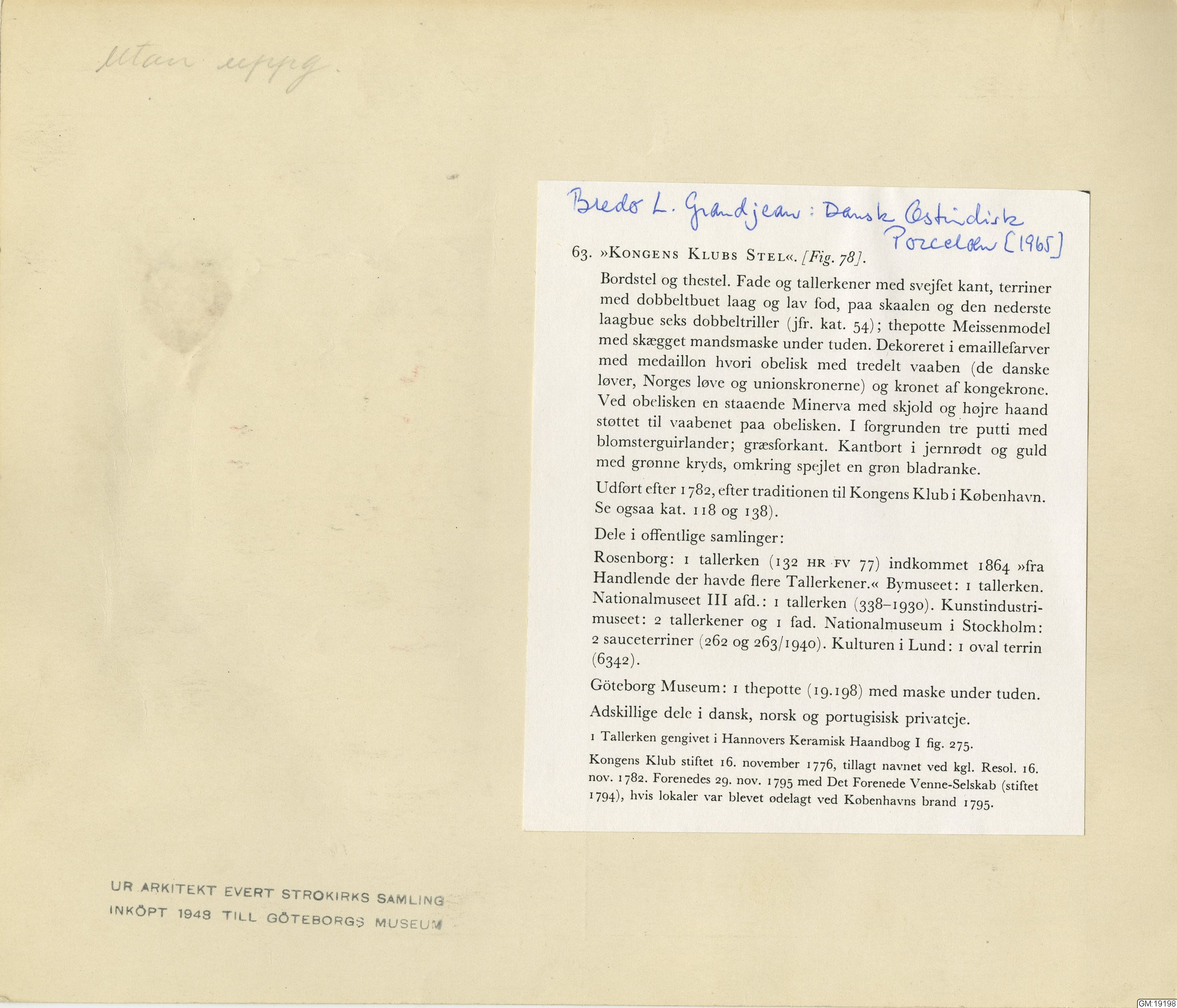 GM katalogkort 179. 18E Porslin Ostindiskt 9. Saml. Strokirk 1
