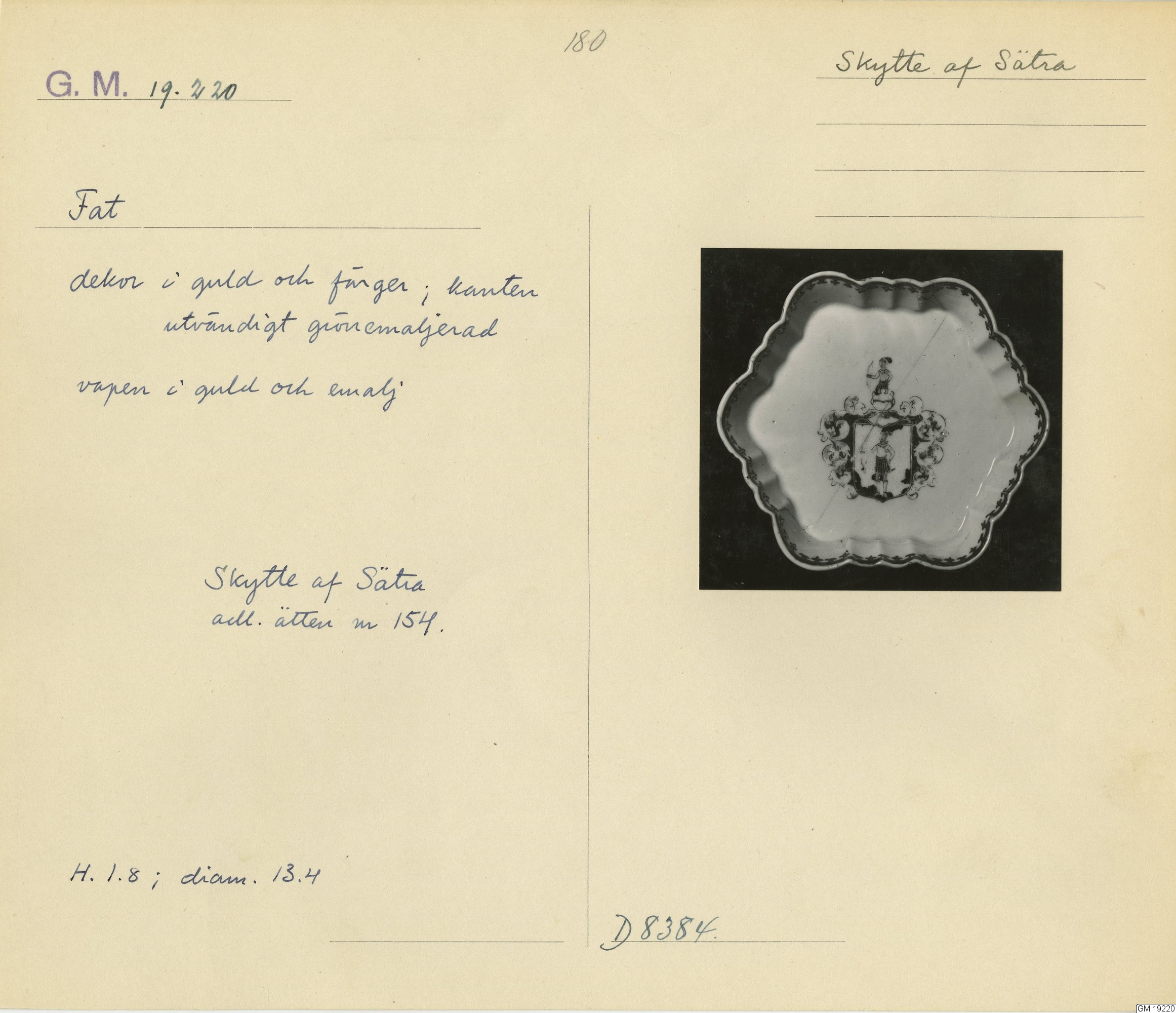 GM katalogkort 180. 18E Porslin Ostindiskt 10. Saml. Strokirk 2