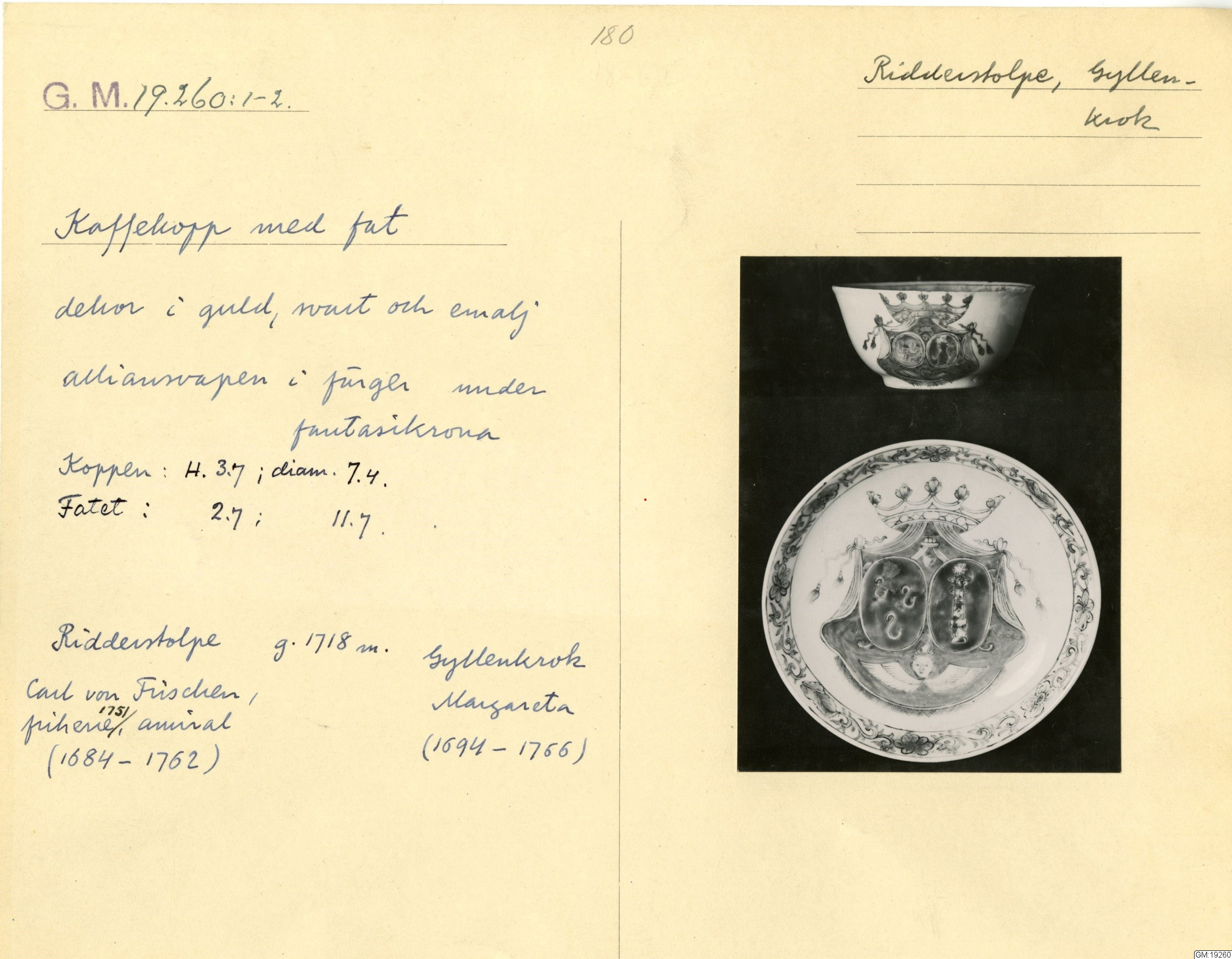 GM katalogkort 180. 18E Porslin Ostindiskt 10. Saml. Strokirk 2