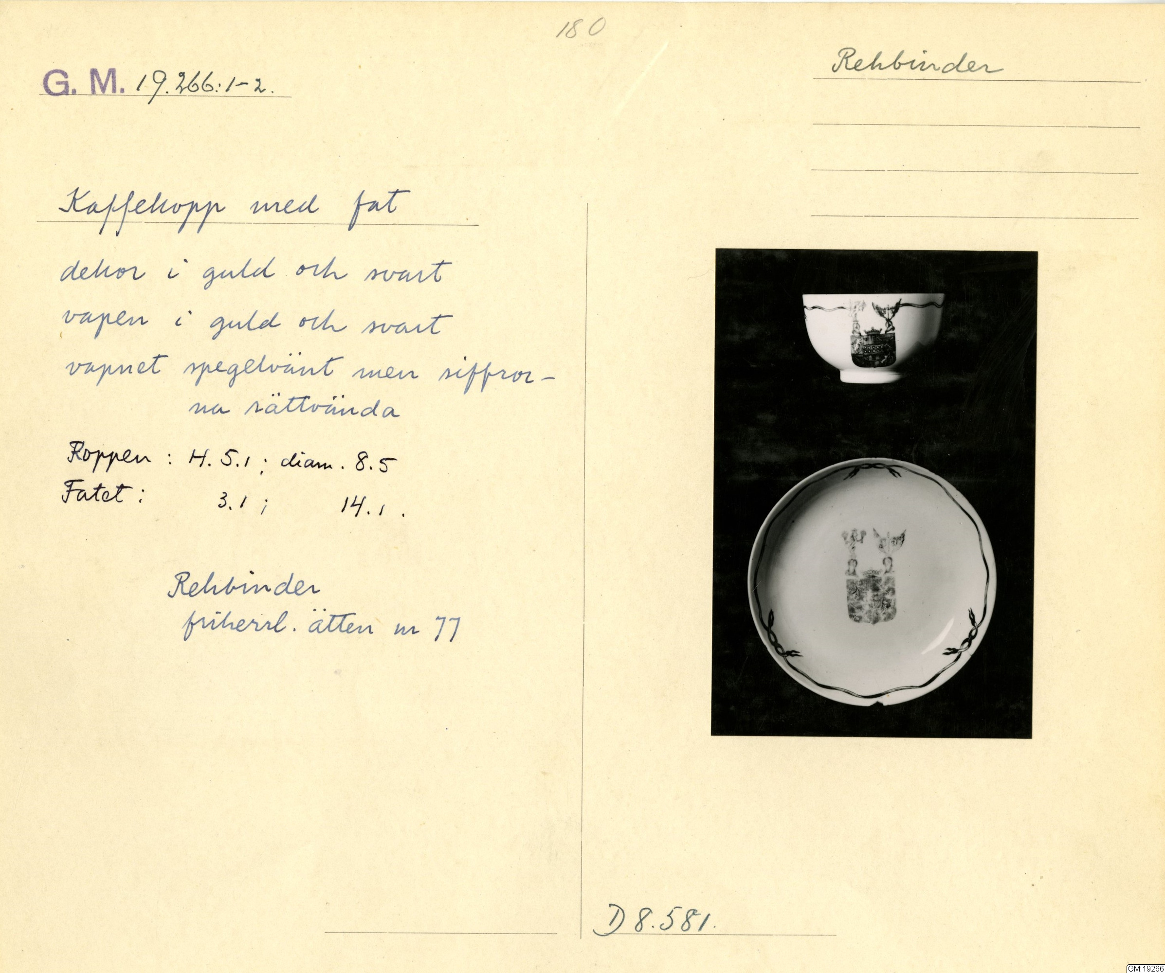 GM katalogkort 180. 18E Porslin Ostindiskt 10. Saml. Strokirk 2
