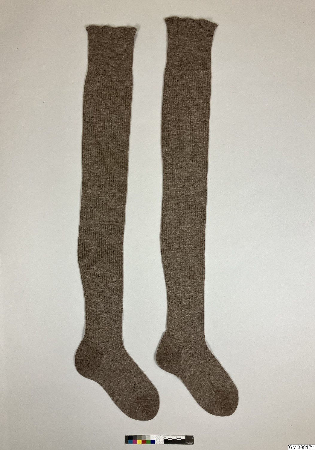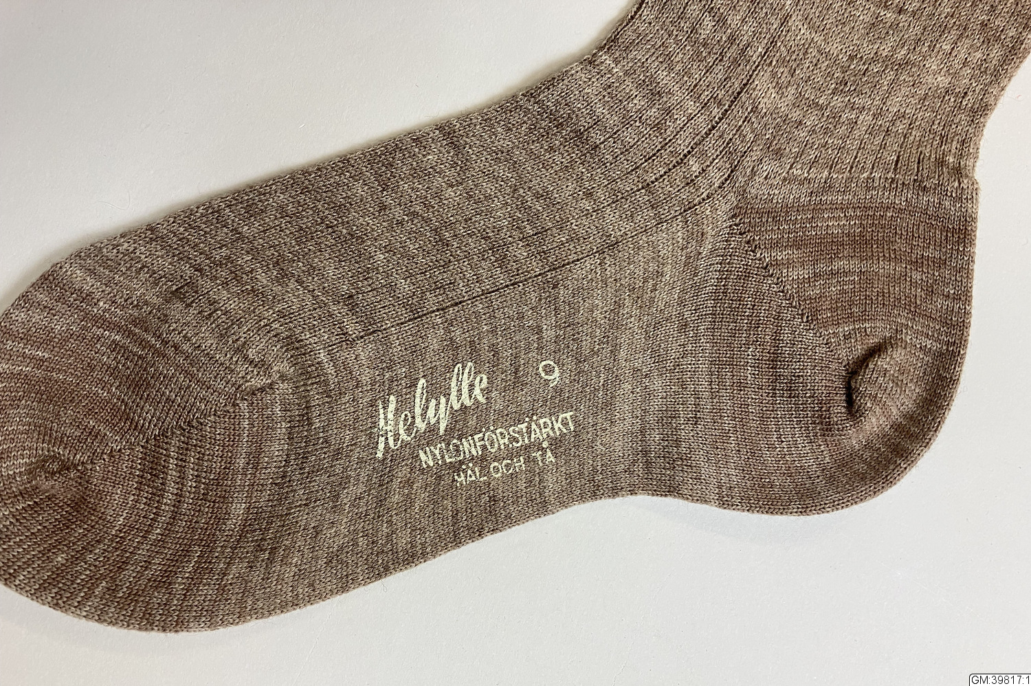 :1 a-b, Damstrumpor av ull, nylon, brunmelerade. Ribbade, maskinstickade. Storlek 9.Märkta Under foten med vit text "Helylle nylonförstärkt häl och tå 9". Stumporna obegagnade.#Breddmåttet gäller fotlängden.