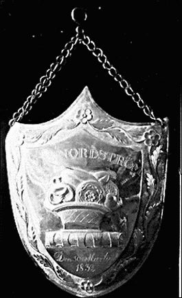 - Skylt i form av en sköld med kedja till upphängning. Längs kanten ett drivet blad och blomstermotiv mot punsad botten. Där innanför ett slätt och buktigt fält på vilket i drivet arbete en korg med bröd. #Ovan denna graverat "N M Nordström", samt under korgen "Den 30 Martü 1832".På baksidan följande stämplar "förfärdigad 1832 av guldsmeden i Göteborg Carl Tengstedt" ( 1819-).