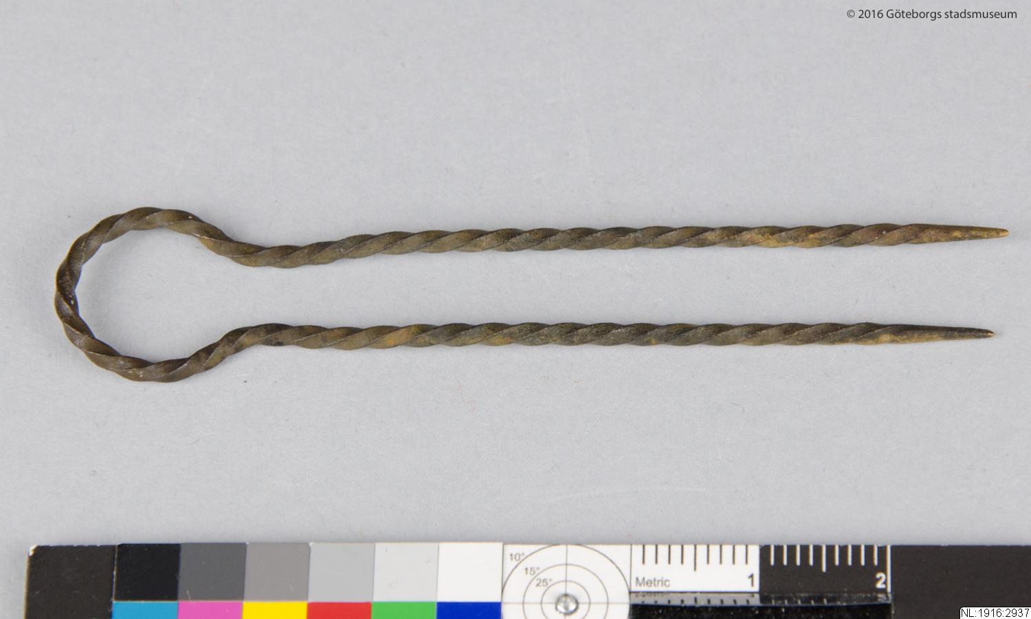 I kistan: Hårnål av mässing från Nya Lödöse. (NL:1916:2937) [Göteborgs födelse, 2017]