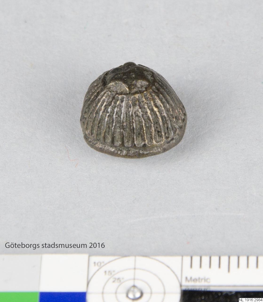 - Halvklotformad metallknapp - öglan saknas - mönstrad med refflor och krönt av en stjärna