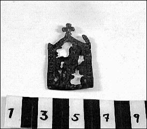 Pilgrim badge from Vadstena, depicting St. Bridget of Sweden. Found in Nya Lödöse. (NL 1918: 809) [The Birth of Gothenburg, 2017]