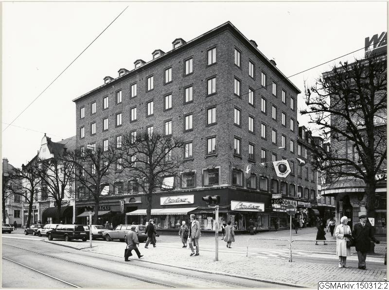 Sträckningsbild Kungsgatan mot öster, till höger nr 21 -25. Kungsgatan 34-36 bakom stängsel, under ombyggnad.