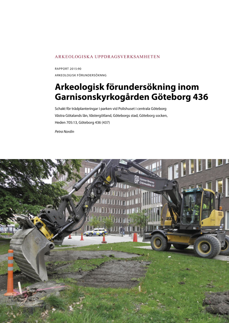 Arkeologisk förundersökning inom Garnisonskyrkogården Göteborg 436; Schakt för trädplanteringar i parken vid Polishuset i centrala Göteborg : Västra Götalands län, Västergötland, Göteborgs stad, Göteborg socken, Heden 705:13, Göteborg 436 (437) : Dnr 5.1.1-00312-2015; Arkeologiska uppdragsverksamheten : Rapport 2015:90 [serien]