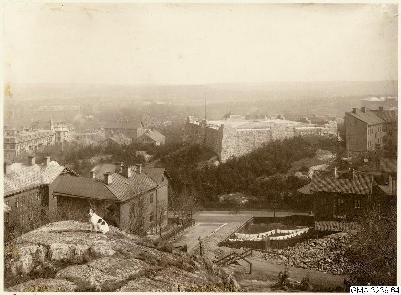 Översiktbild över Landala österut med vatternreservoaren ovanför Viktoriagatan.