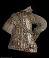 Figurin i ljusrött lergods med grå glasyr. Endast bålen - huvud, ben och halva ena armen saknas.