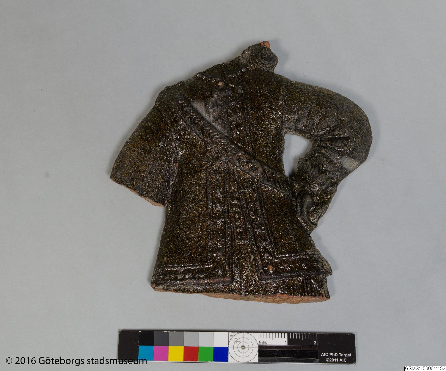 Ceramic figurine from the 1600s. Found in 2015 by archaeologists under a building at Gustav Adolf Square in Gothenburg. (GSMS:150001:1) [The Birth of Gothenburg, 2017]