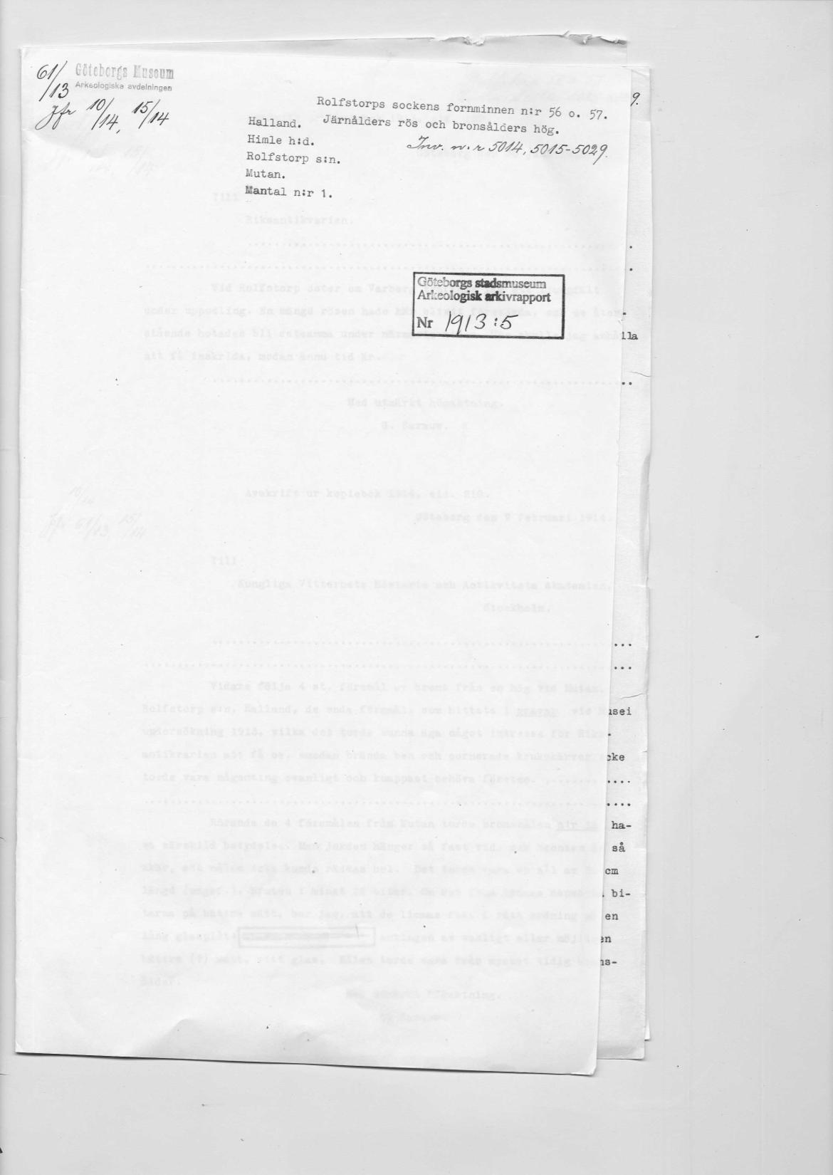 Arkeologisk rapport 1913:05 :: rapport, arkeologisk rapport