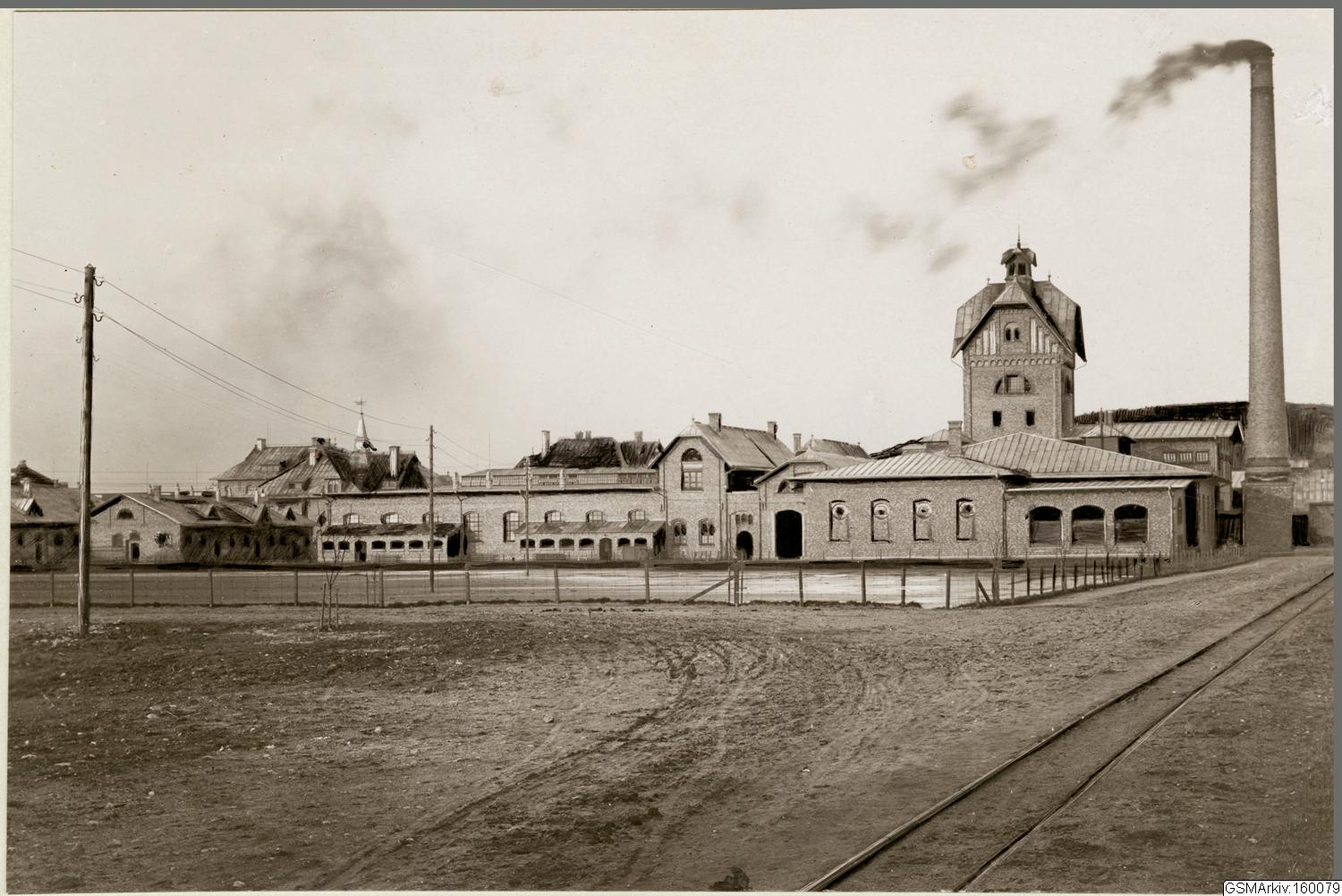 Vy, mot norr, över Göteborgs slakthus från 1903. Detta var Sveriges första kommunala slakthus, med marknadshallar, slakthallar, administrationslokaler, restaurang och bostäder.