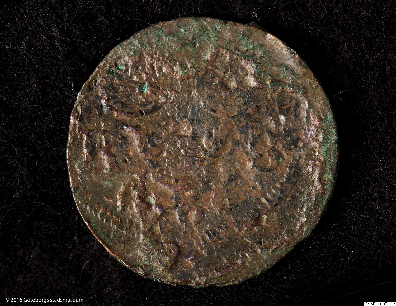- mynt av koppar i vallören 1/6 öre kopparmynt, slaget för Kung Karl XI år 1666. Åtsidan visar Riksvapnets tre kronor omgivna av bokstäverna CRS= Carolus Rex Sueciae vilket betyder Carl Konung av Sverige. Frånsidan visar vallörsiffran 1/6 ÖR SM med ett krönt lejon i mitten. /ctn.