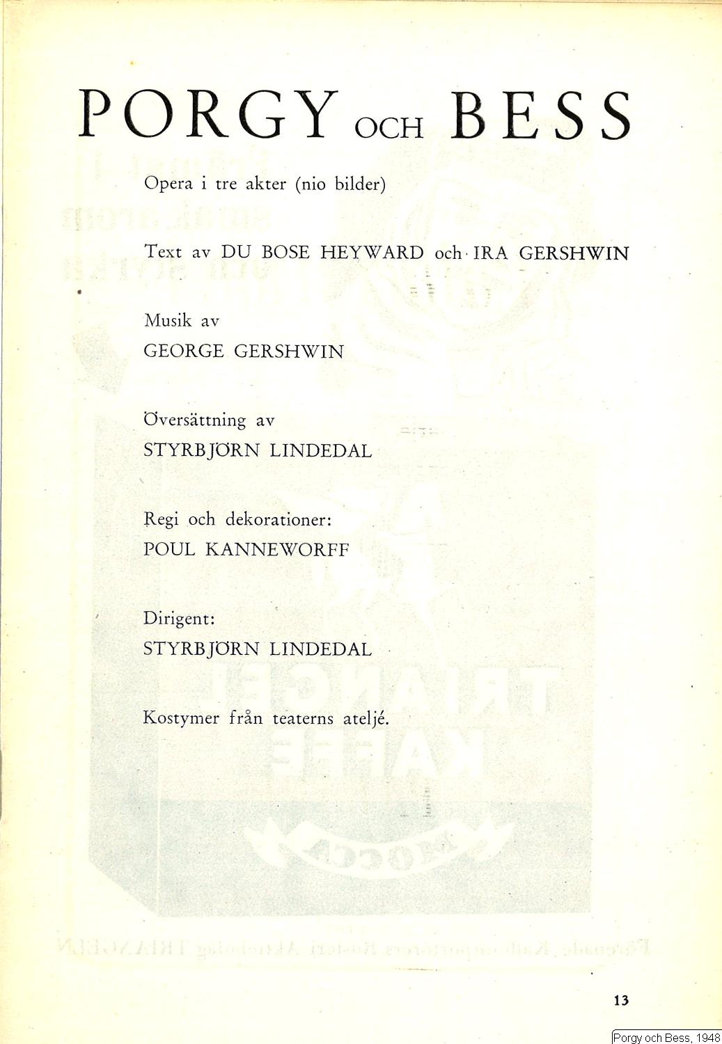 - Amerikansk opera i tre akter från 1935 med musik av George Gershin och libretto av Ira Gershwin, baserat på romanen Porgy av Dorothy och DuBose Heyward från 1927.