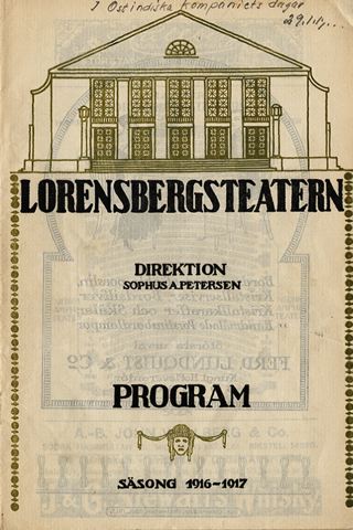 "Svenska bilder från det gamla Göteborg". Pjäs i fem akter av C. R. A. Fredberg.; Uppsättningen spelad 34 ggr.