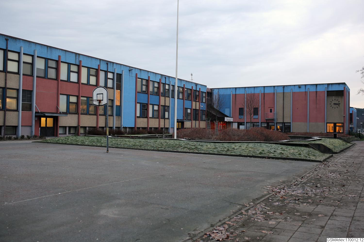byggnad i bostadsområdet. Skolan är typisk för