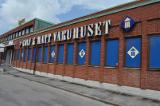 rött tegel. Den långsträckta fasaden mot Mölndalsån är