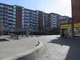 handel och kontor kring ett torg samt en bred allé