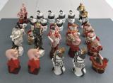 Kungen på den "kapitalistiska" sidan är representerad som Döden i rustning och en hermelinfodrad mantel, och drottningen som Fortuna med ett ymnighetshorn, med guldmynt som rinner ut. Bönderna är i kedjor. På den "kommunistiska" sidan är kungen en ärlig smed, och drottningen har ett sant överflödshorn. Bönderna håller skäror och kärvar av vete. Enligt den ryska schacktraditionen, ärvd från tsartiden, är tornen båtar. Alla pjäser är märkta på undersidan med en hammare och skära och "made in Russia, USSR" i röd emalj.