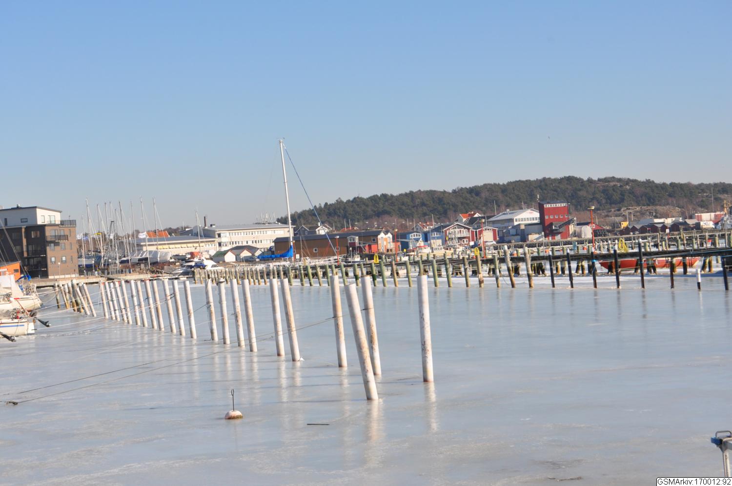 färdigkrossade isen till båtarna längs kajen ett tiotal meter