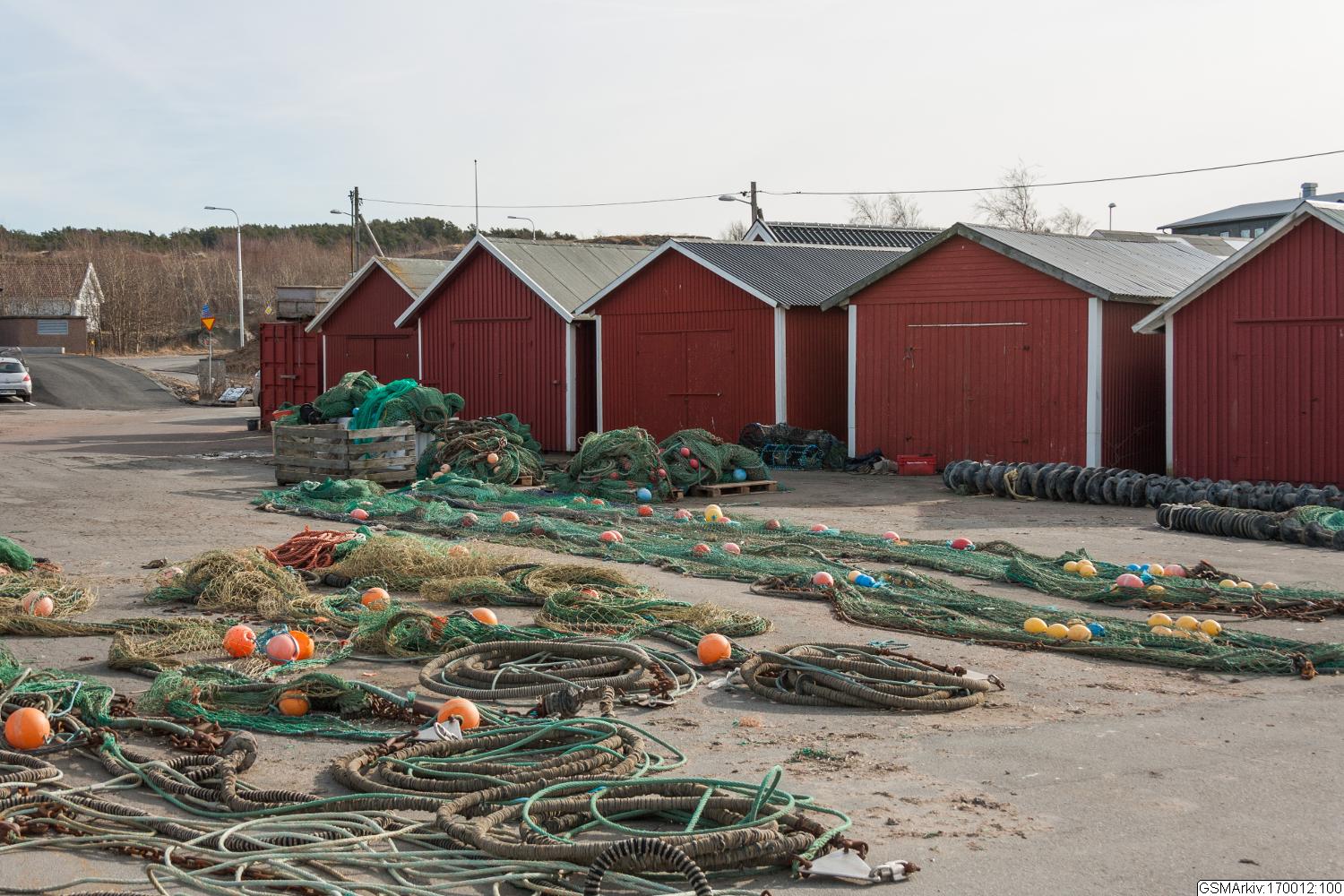 Stora asfaltytor för avlastning av fångst och redskap