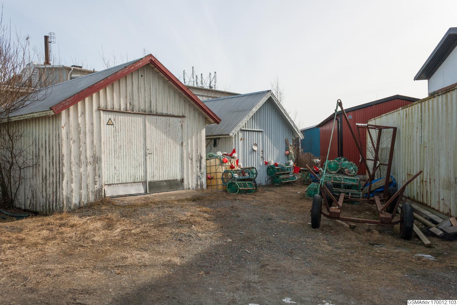Två grupper av bodar för förvaring av redskap och