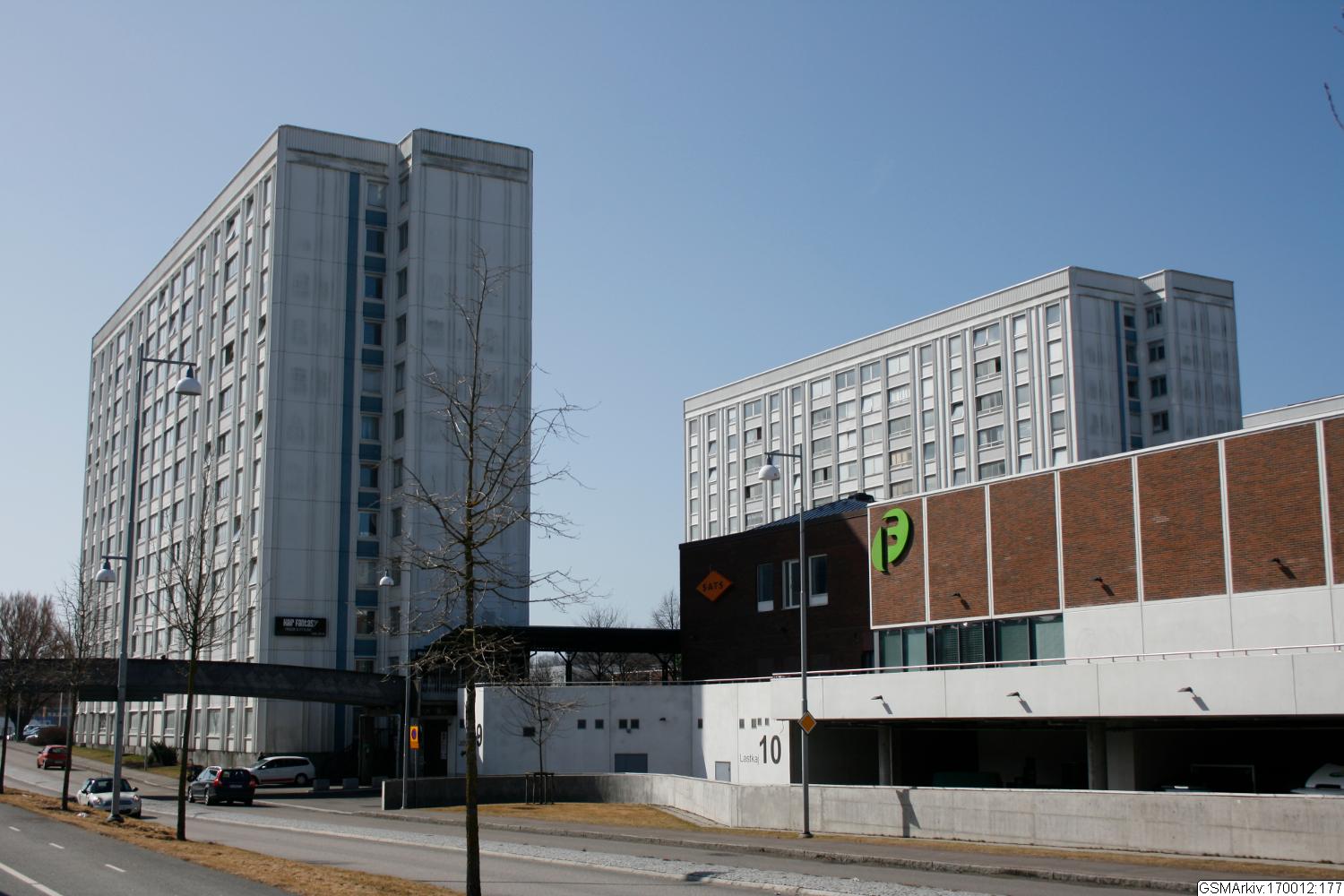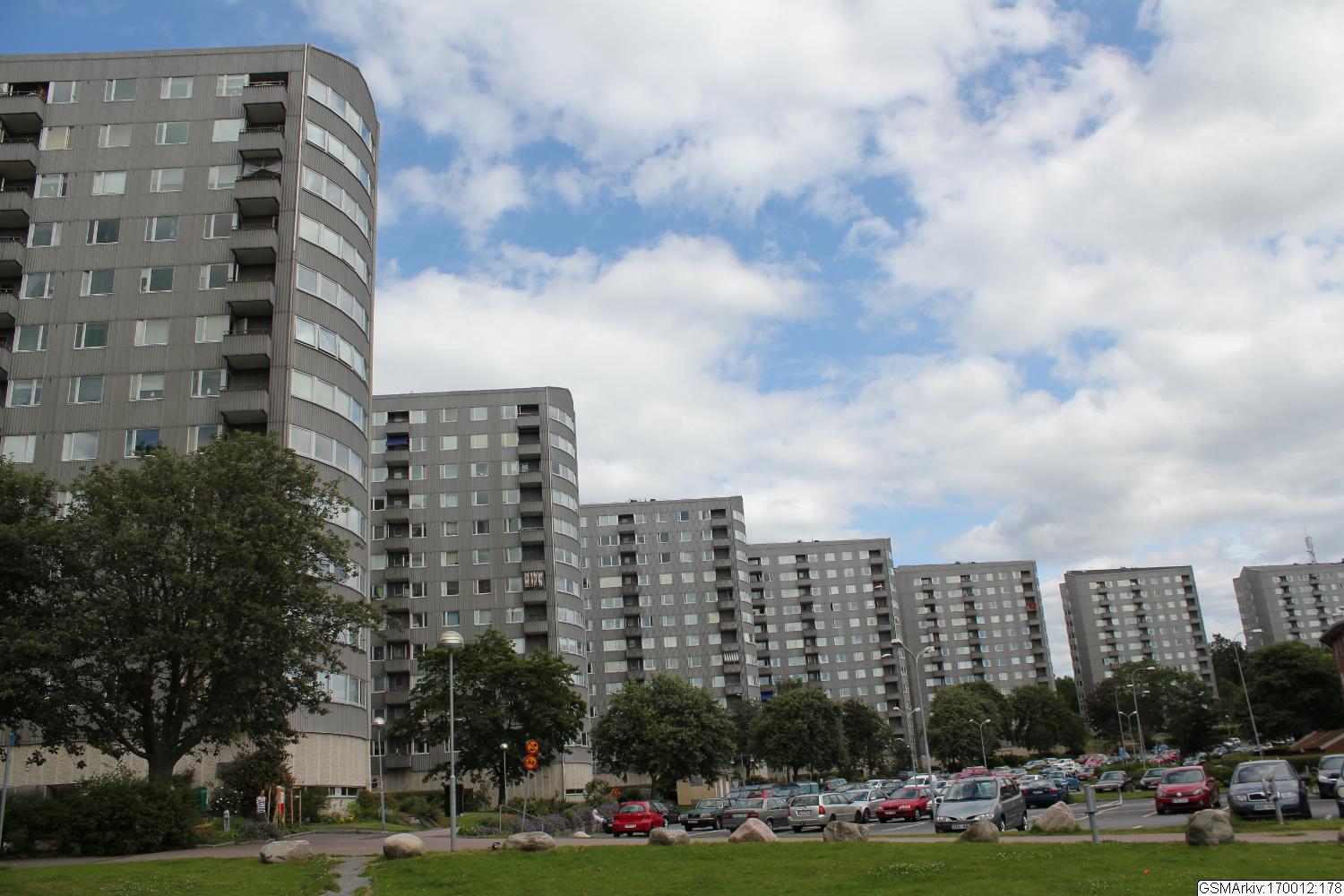 inom deras arkitektkontor. De höga punkthusen rönte stor uppmärksamhet när de byggdes. Såväl form som fasader uppskattades. Även invändigt höll lägenheterna och trapphusen ovanligt hög standard med ekparkett, keramikplattor och kakel. Panncentralen ”Tratten” planerades att bli 55 meter hög, men uppgifter finns även om 70 meter. Vid en storm år 1969 knäcktes den övre delen och reparerades till en lägre höjd.