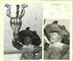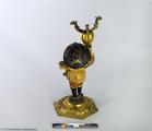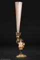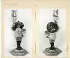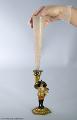 Liten stayett av Gustav II Adolf tillverkad av polykromt bemålad och delvis förgylld metall/plåt, i kungens hand ett strutformigt glas med mycket finmaskigt rutmönster i glasmassan. Glaset numera något glassjukt och vitaktigt i färgen.
