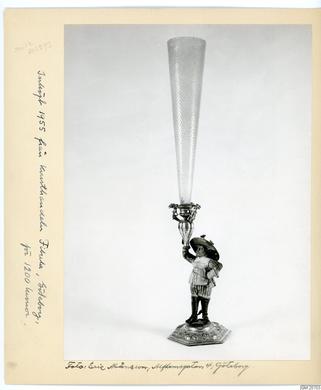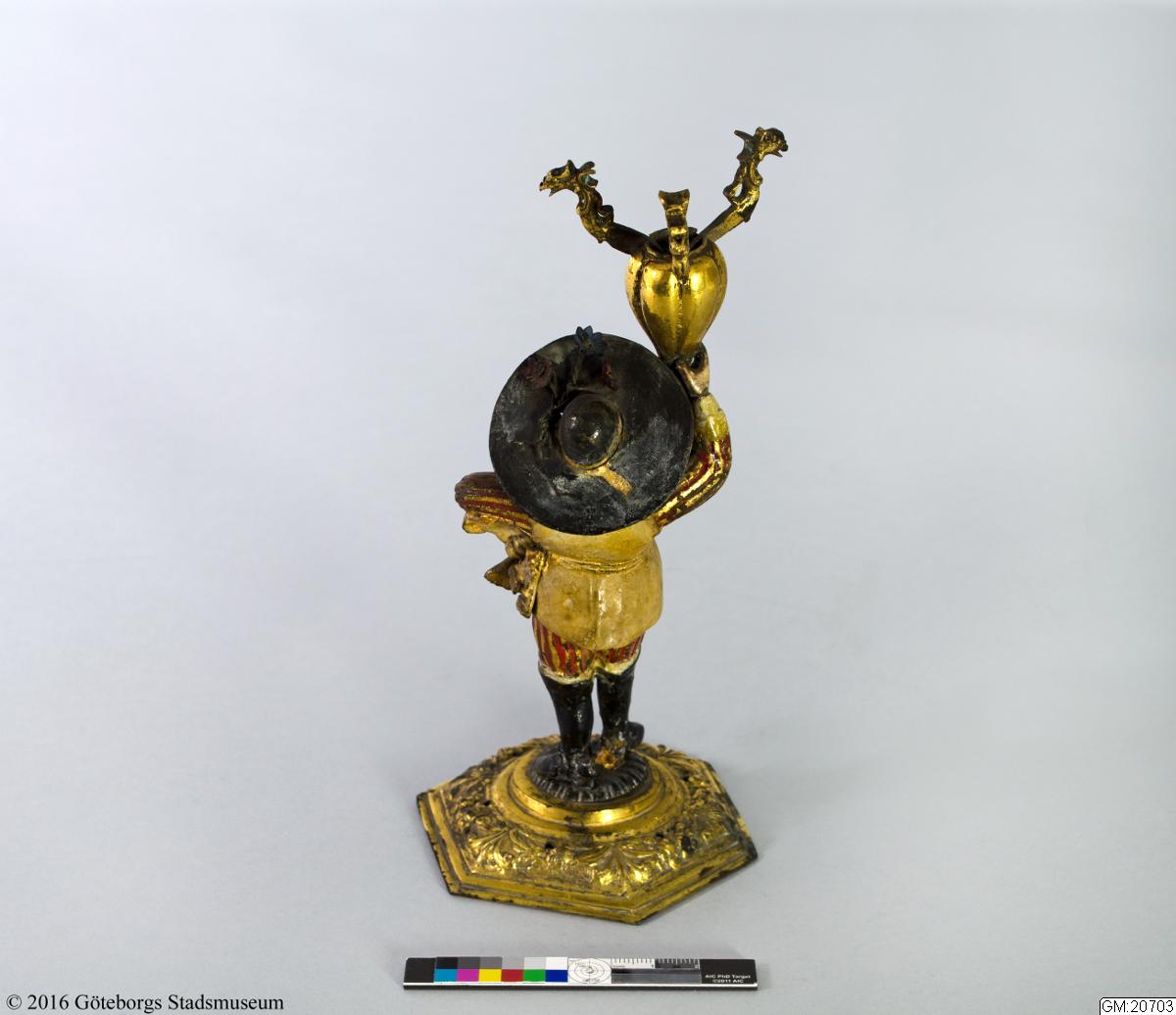 Glas i en hållare som föreställer den svenske kungen Gustav den andre Adolf. (GM:20703) [Göteborgs födelse, 2017]