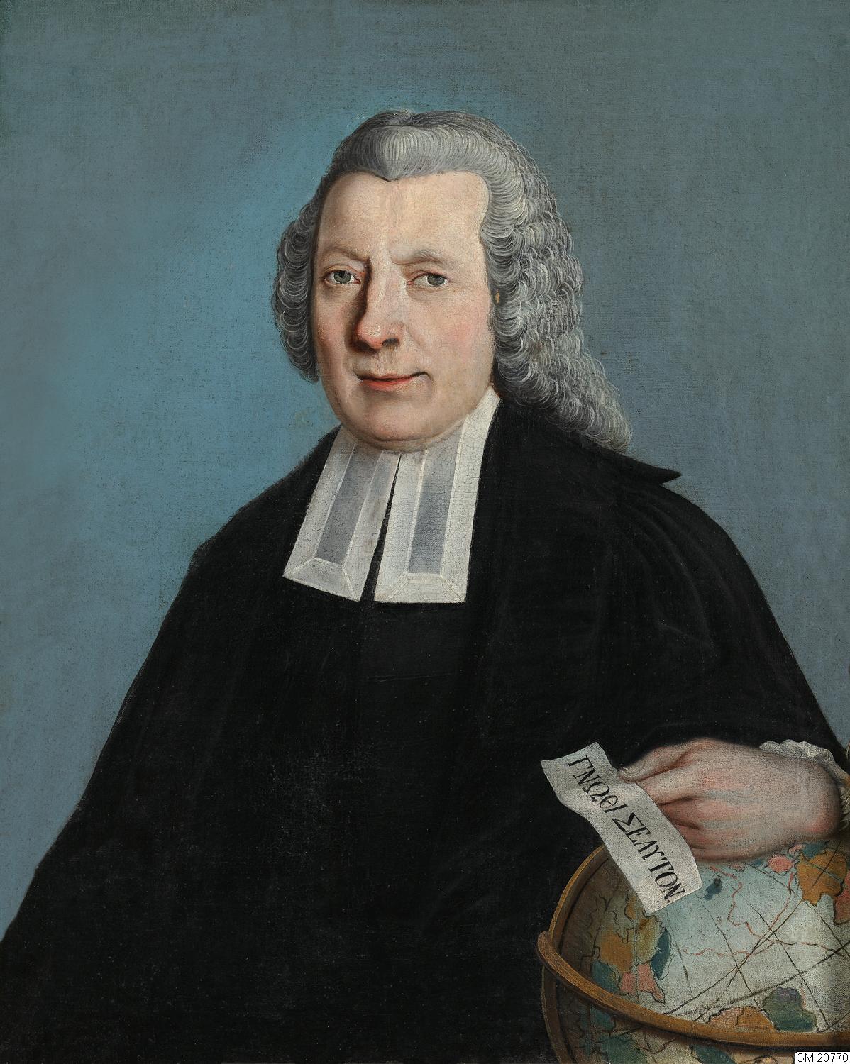 - Porträtt av okänd prästman, ca 1760, utfört av konstnären Jonas Dürchs, på lappen grekisk text med ordalydelsen: Gnothi seauton= Känn dig själv.