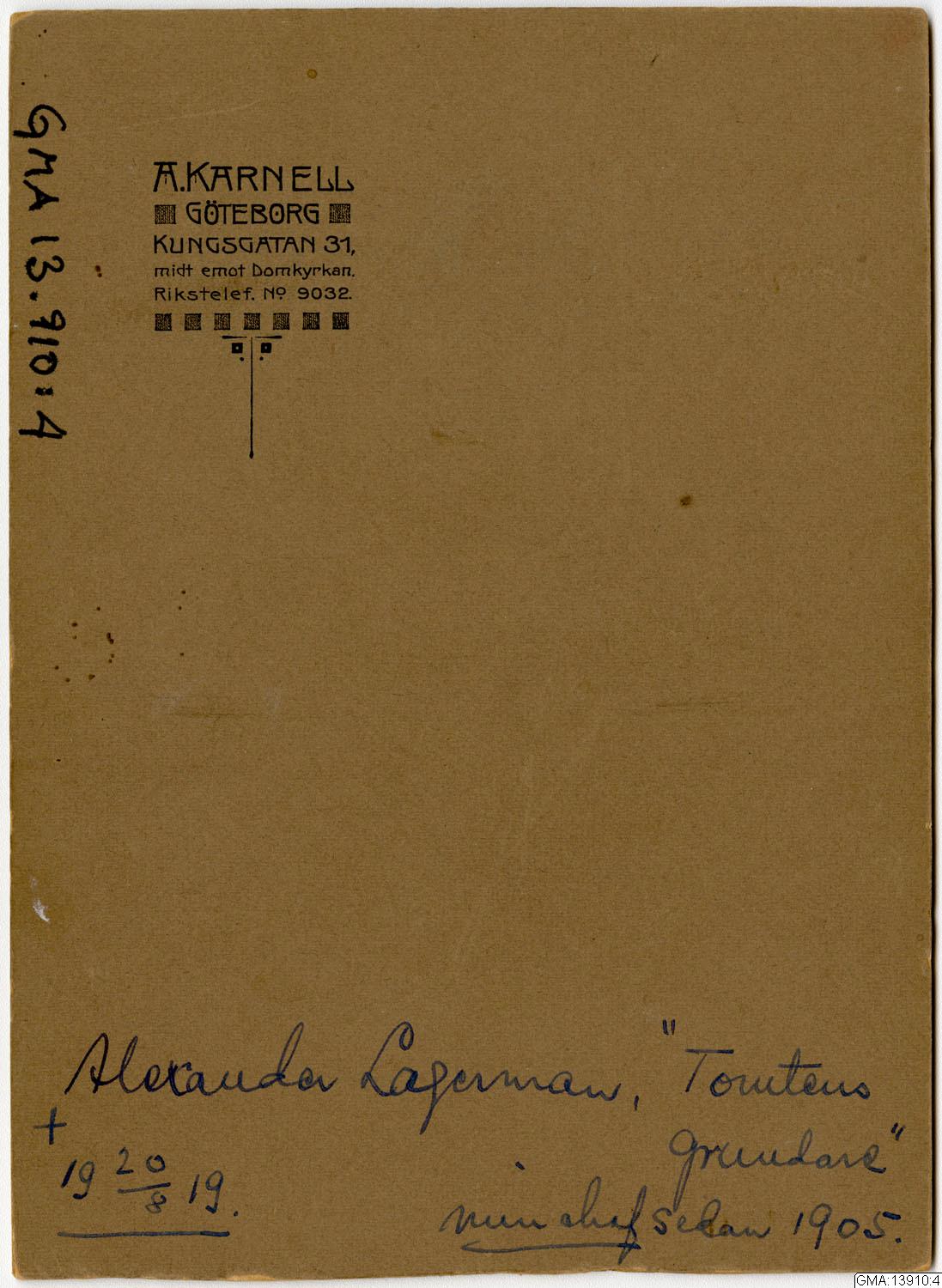 <space>Porträttfoto av Alexander Lagerman ([död] 1919 20/8) taget av Karnell.