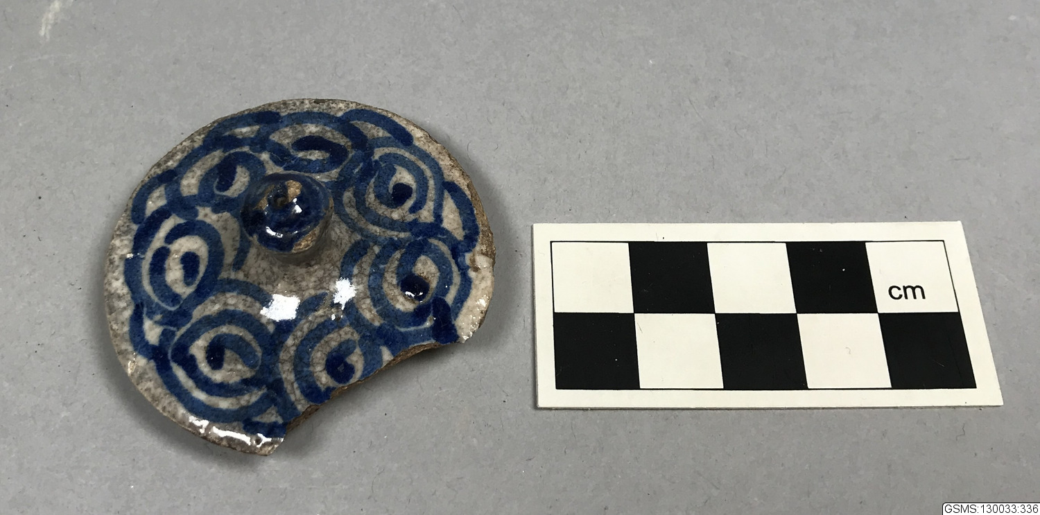 Blåvitt fajanslock; lock till liten burk