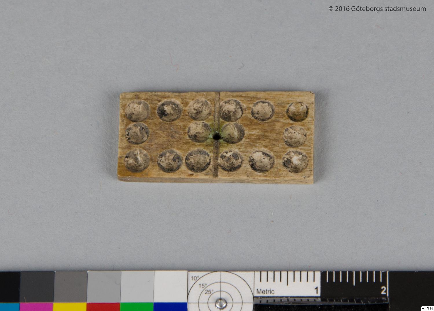 Domino tile in bone or antler, from the early 1600s. (F:704) [The Birth of Gothenburg, 2017]
