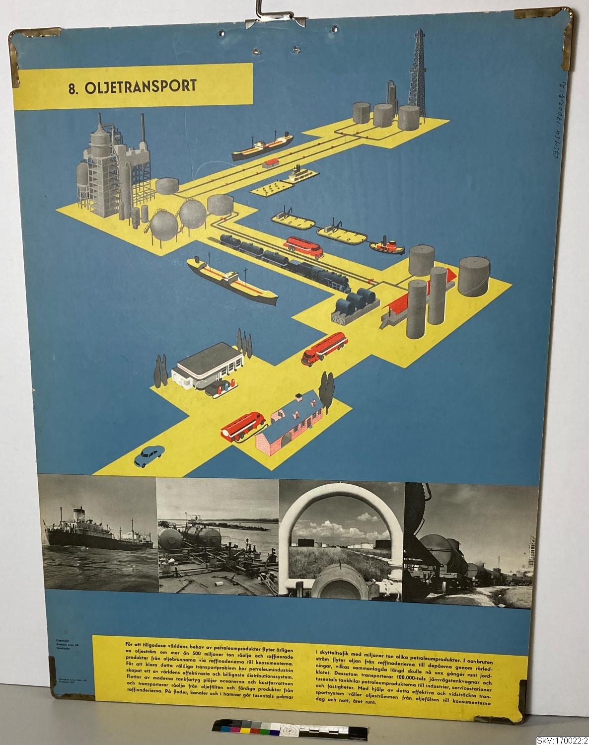 Skolplansch, ena sidan av dubbelsidig plansch. Ingår i planschserie utgiven av Svenska Esso, nr 8 "Oljetransport".
