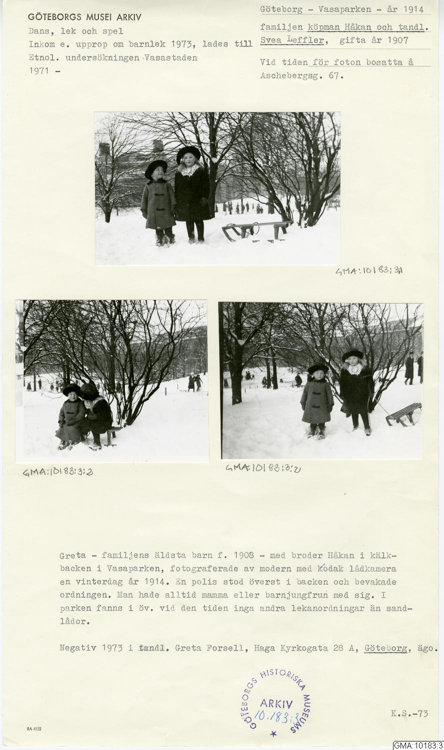 Arkivblad med 3 fotografier hör samman GMA:10183. Fotografierna har egna poster, GMA:10183:3:1-3