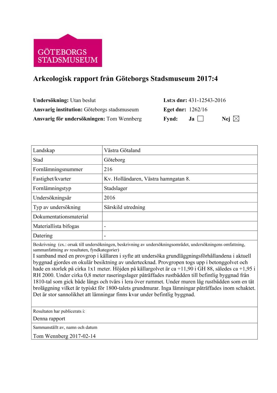 Arkeologisk rapport från Göteborgs Stadsmuseum 2017:4