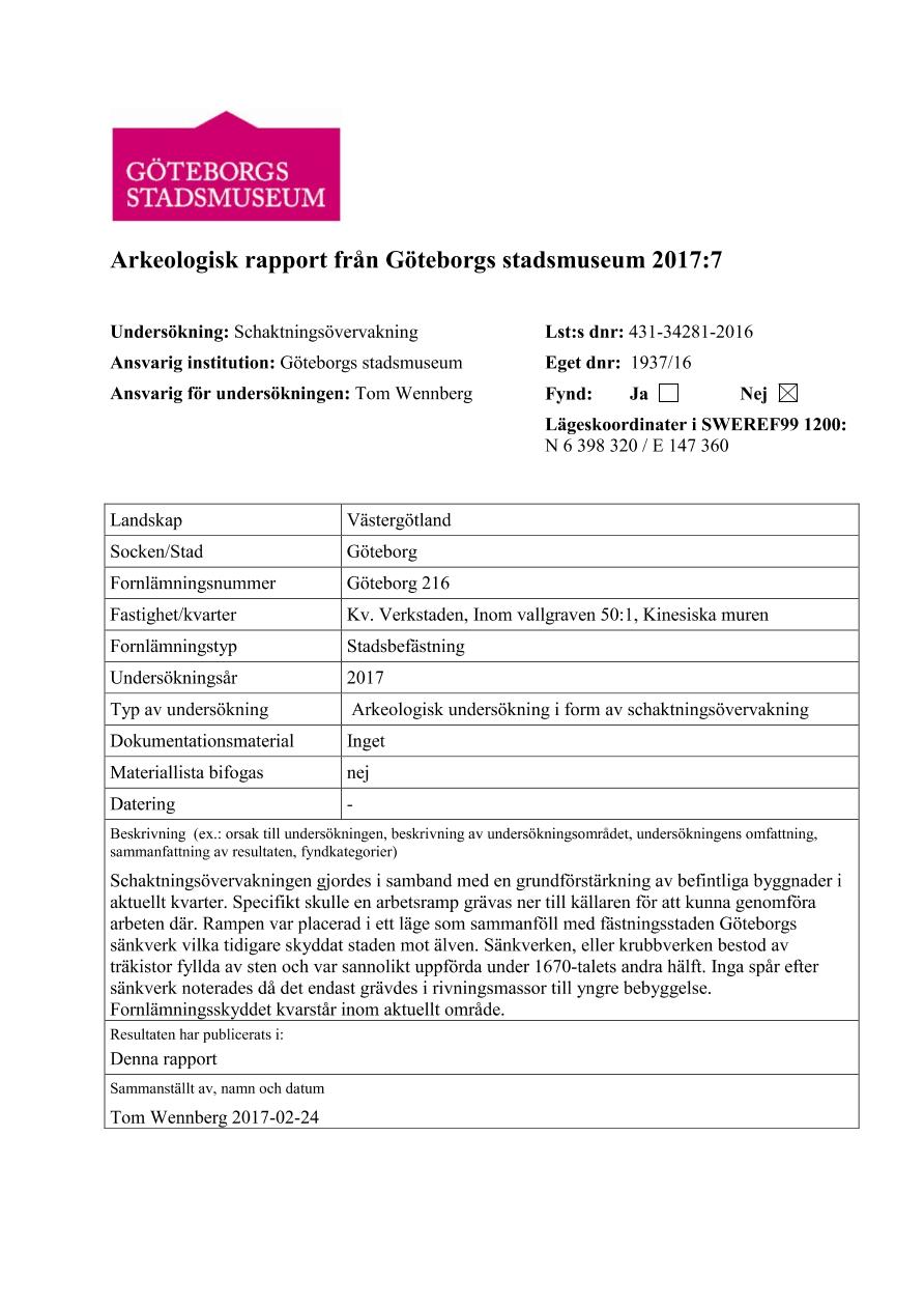 Arkeologisk rapport från Göteborgs Stadsmuseum 2017:7