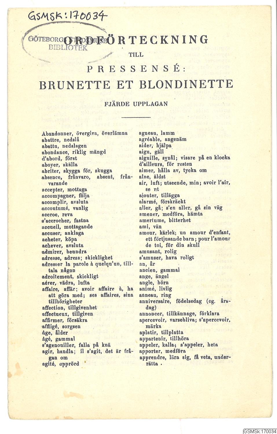 GSMSk:170034 :: lärobok, böcker, franska, ordlista
