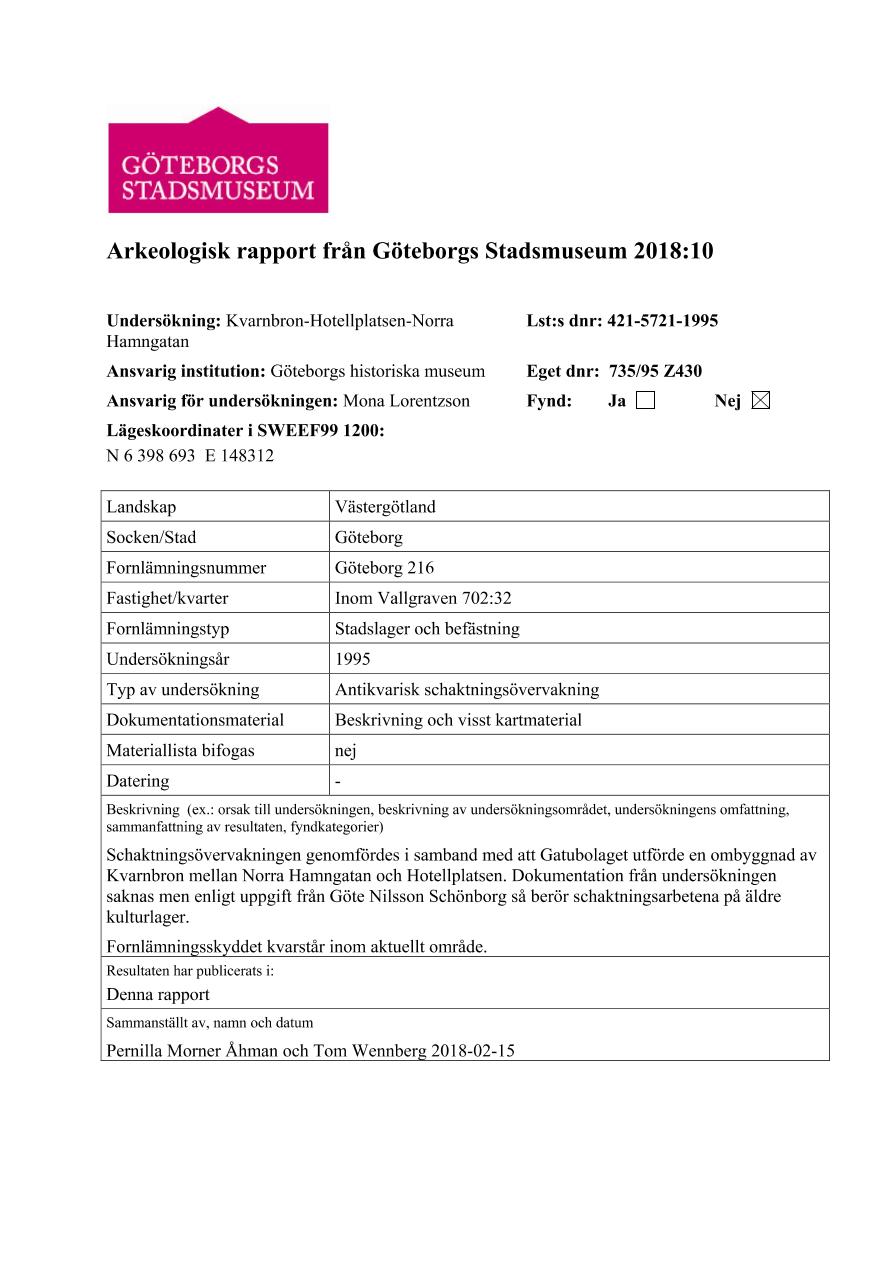 Kvarnbron-Hotellplatsen-Norra Hamngatan; Arkeologisk rapport från Göteborgs stadsmuseum 2018:10