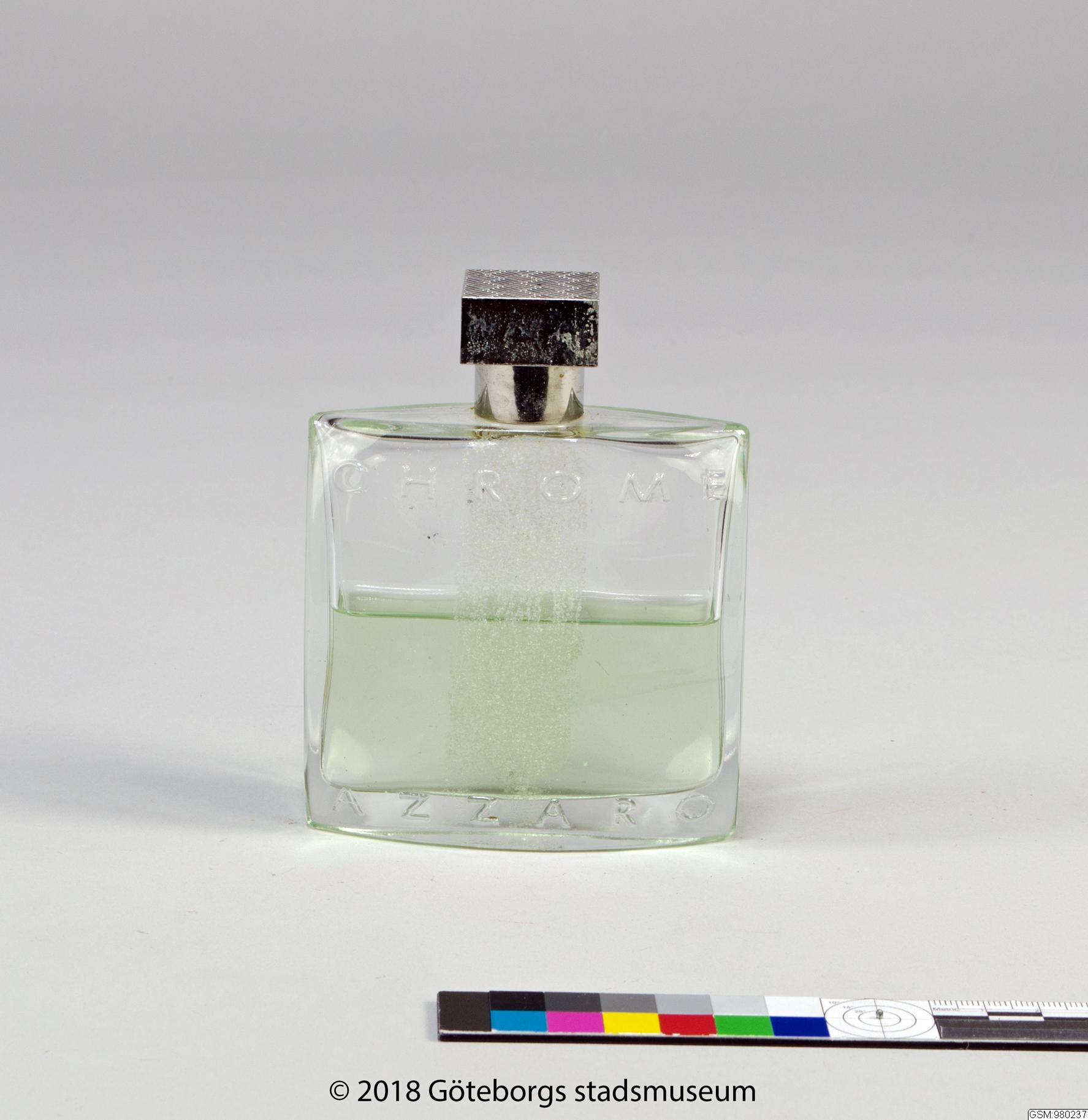 Parfymflaska i glas.Märke CHROME Azzaro.(Aftershave?)