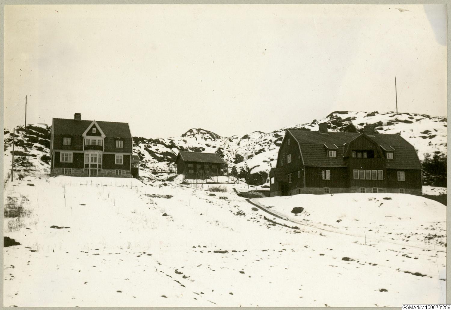 Till höger på bilden ser man Myrornas Barnhem. Villan till vänster är i dag nuvarande Bågskyttebacken i Göteborg. När det byggdes låg det i Tosthult, Fässberg socken och tillhörde Mölndal. Huset stod klart 1914. Barnhemmet vet jag inte när det stod klart. Det var min farfar och hans svåger som lät bygga huset. Jag är uppväxt där fast i annat hus som i dag ligger nedanför. MVH Ingela Malmberg
