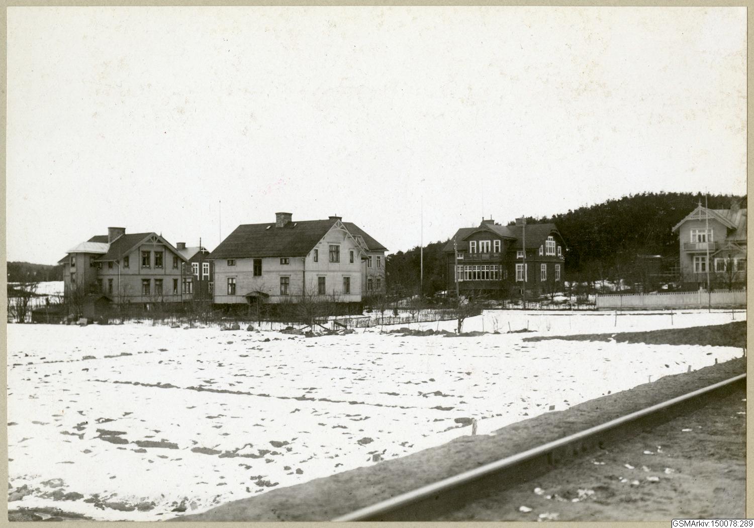 Frölundaborg d. 7 Mars 1916; Rälsen i förgrunden tillhör eventuellt Säröbanan.
