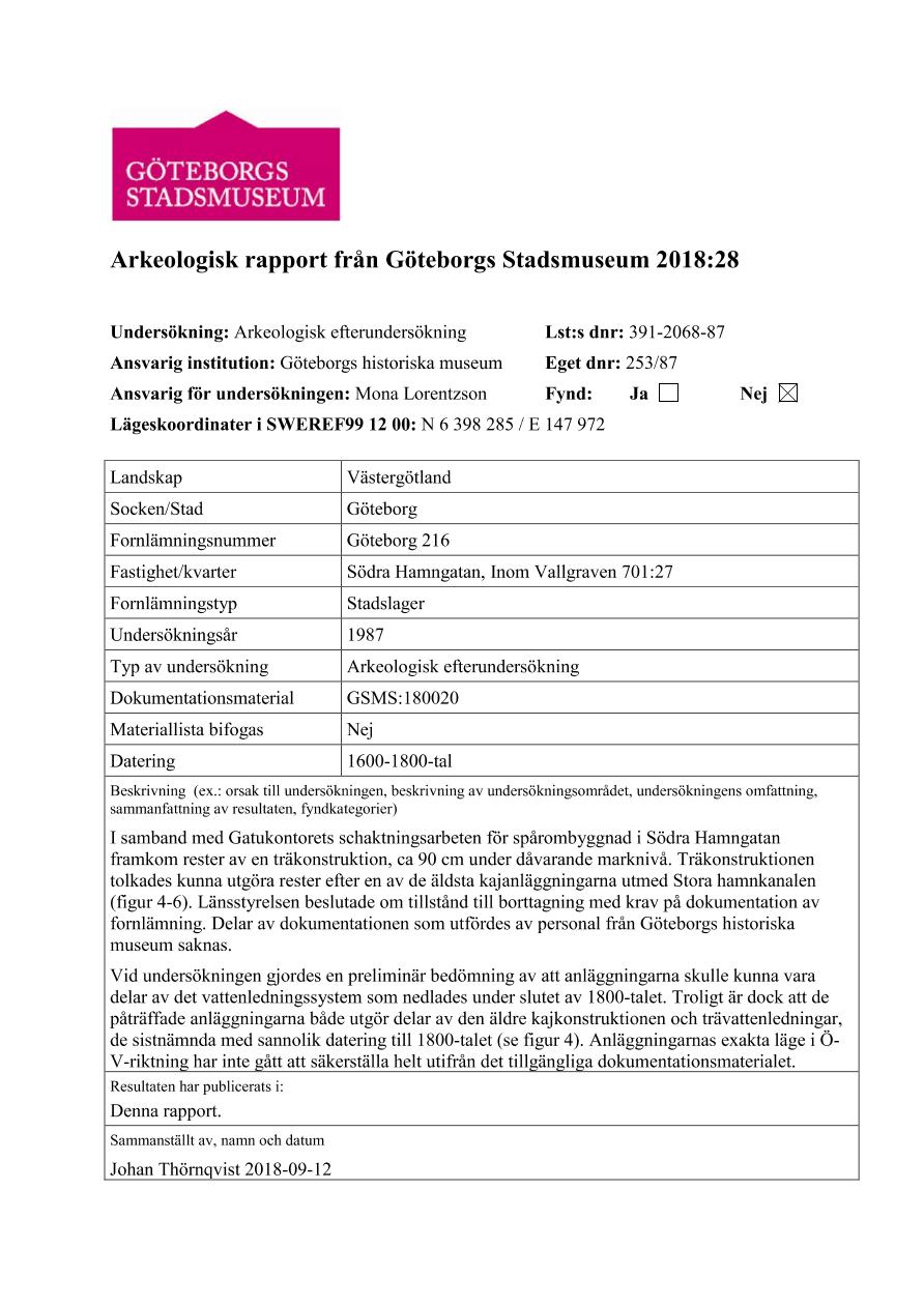 Arkeologisk rapport 2018:28 :: arkivalier, rapport, arkeologisk rapport
