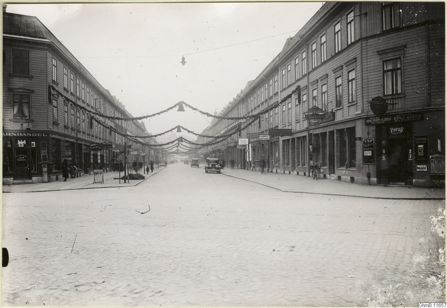 bil; bostadshus; butik; flerbostadshus; juldekoration; landshövdingehus