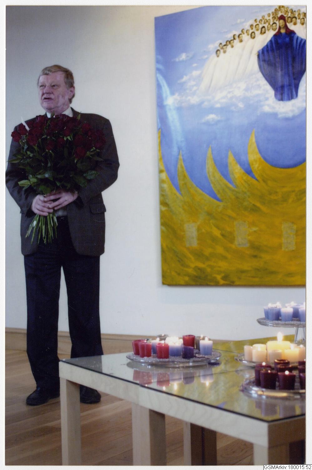 Göran Johansson talar och ska överlämna blommor vid invigningen av minneslokalen.