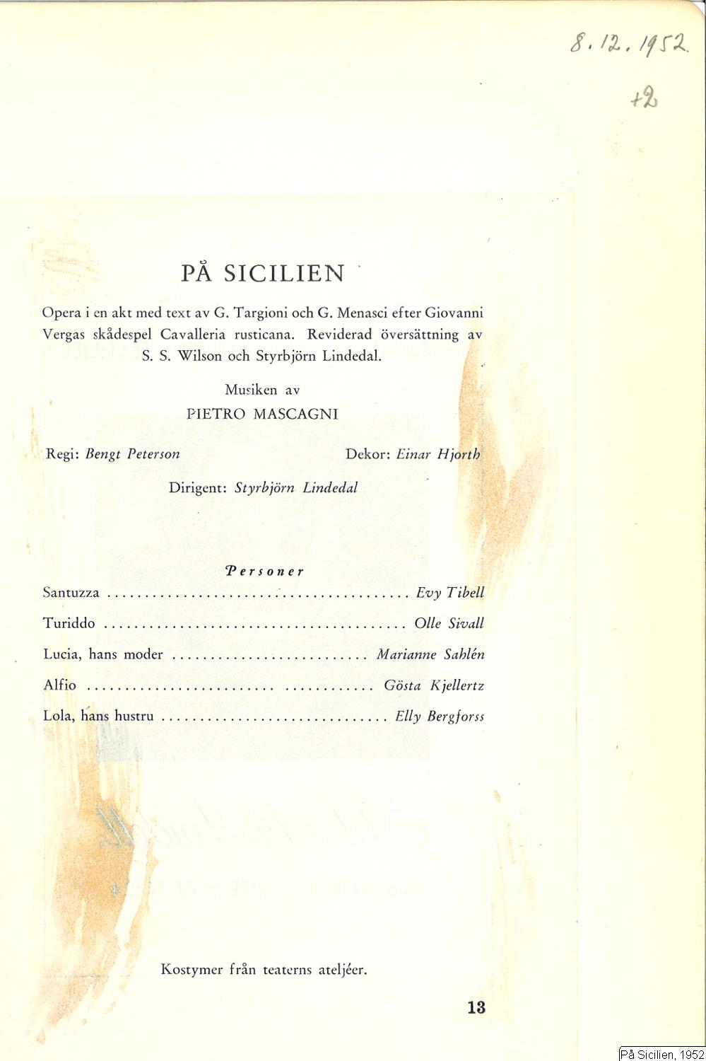 - Opera i en akt efter G. Vergas novell och senare skådespel "Cavalleria rusticana".