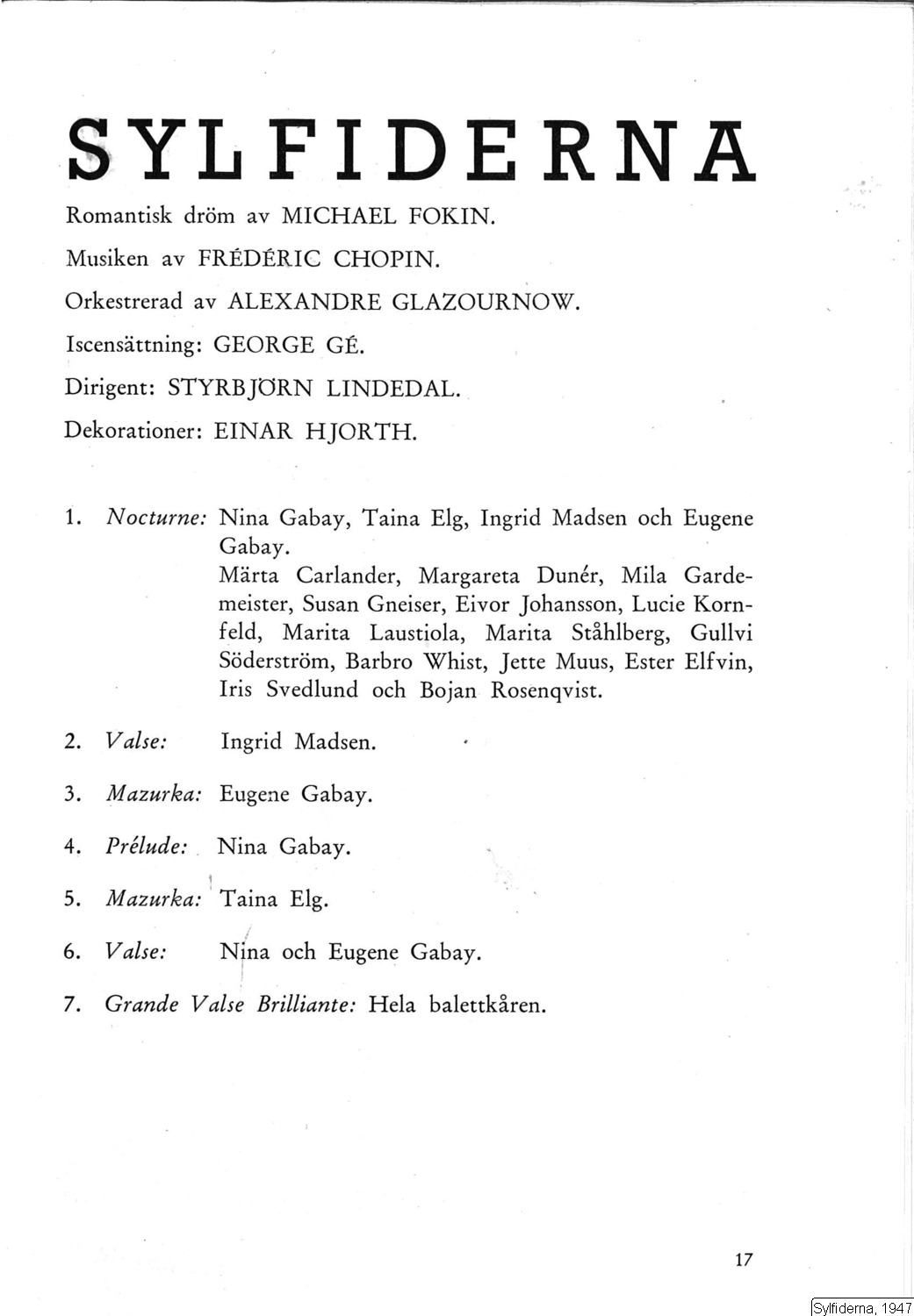 Sylfiderna, 1947 :: föreställning