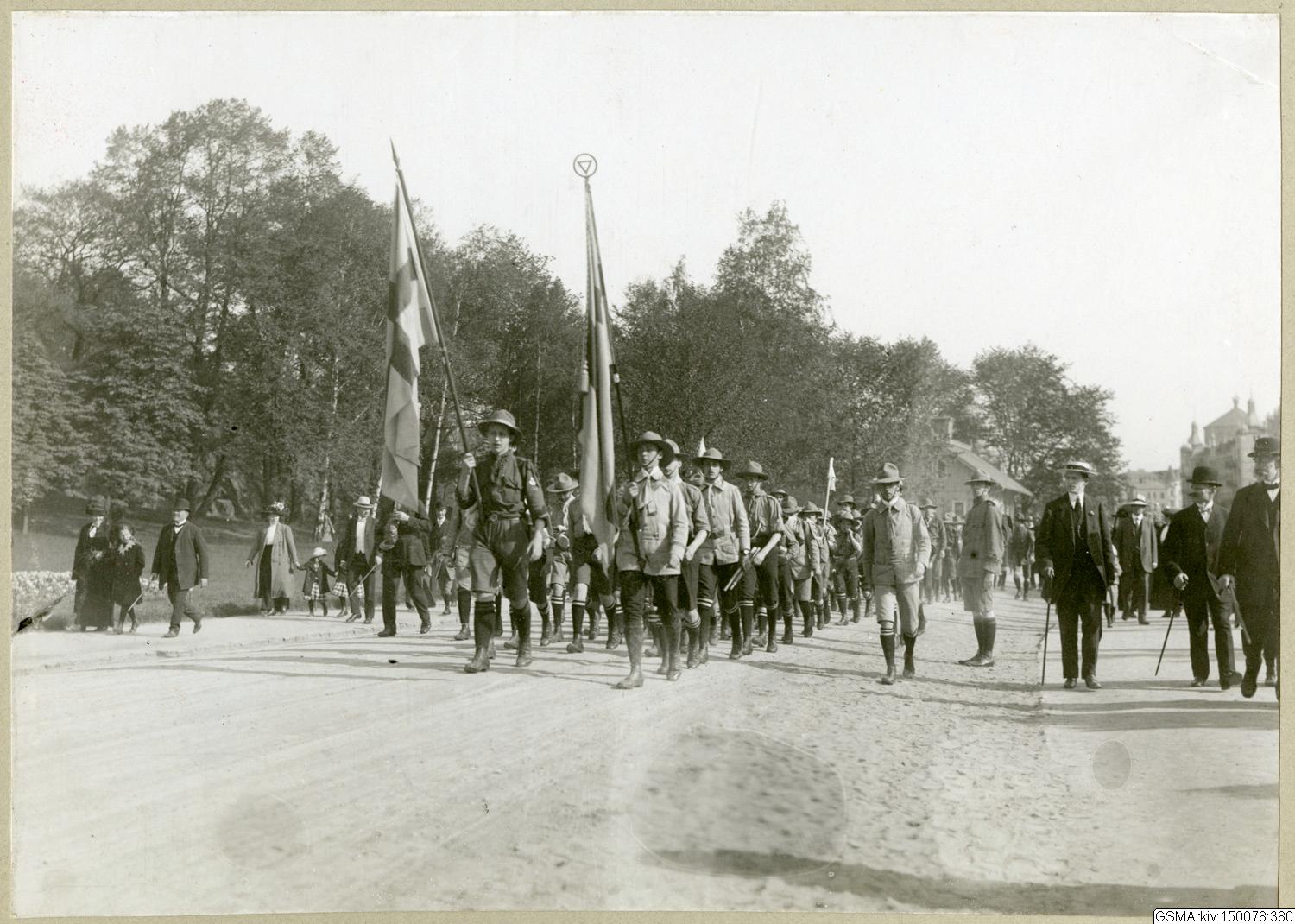 Hälsingborgs-scouter på Göteborgsbesök d. 12 Maj 1913.