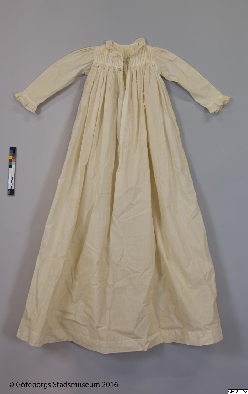 bärklänning av bomullsbaist lång ärm litet halsrysch möjligen en vardagsklädsel